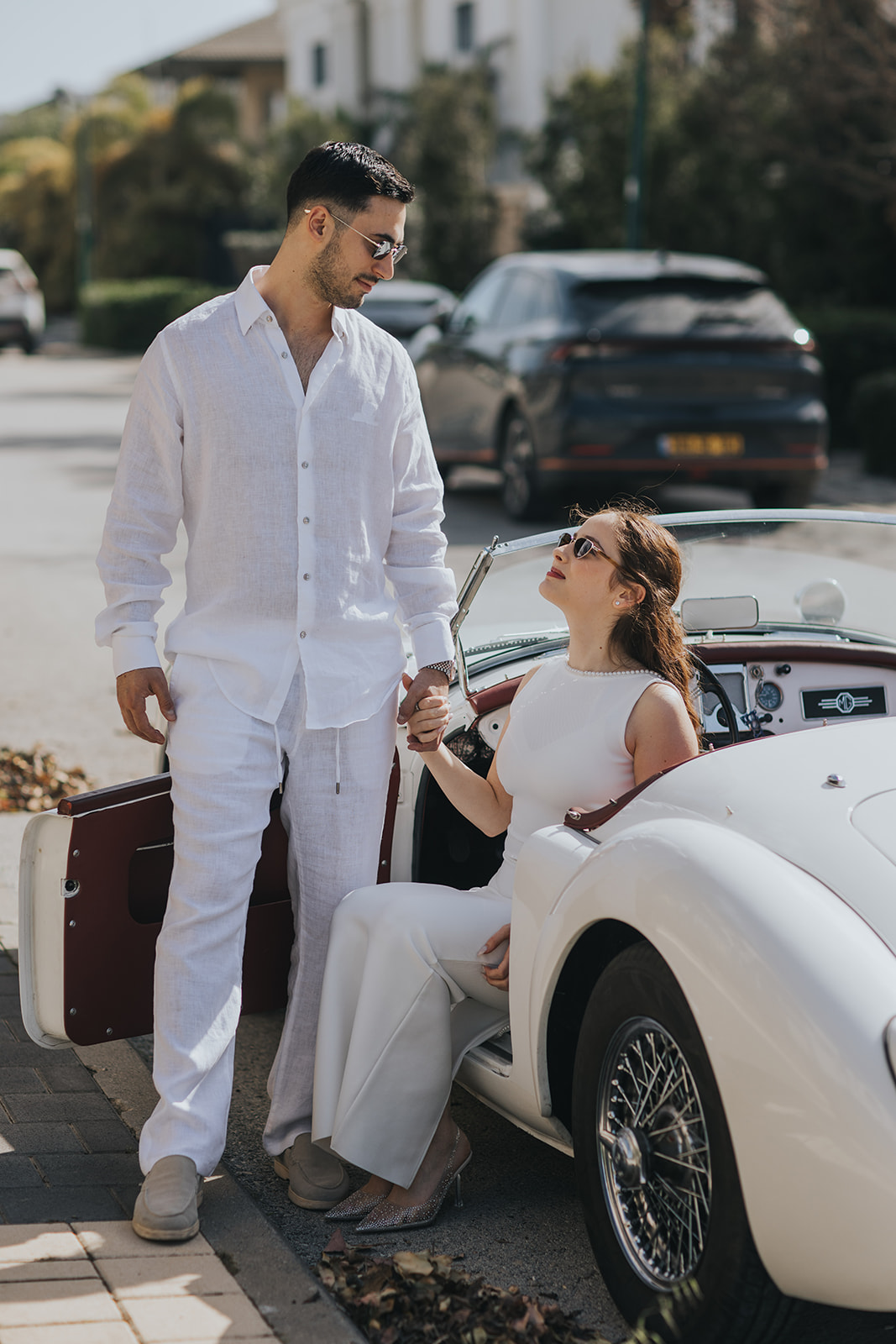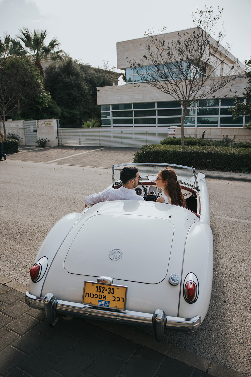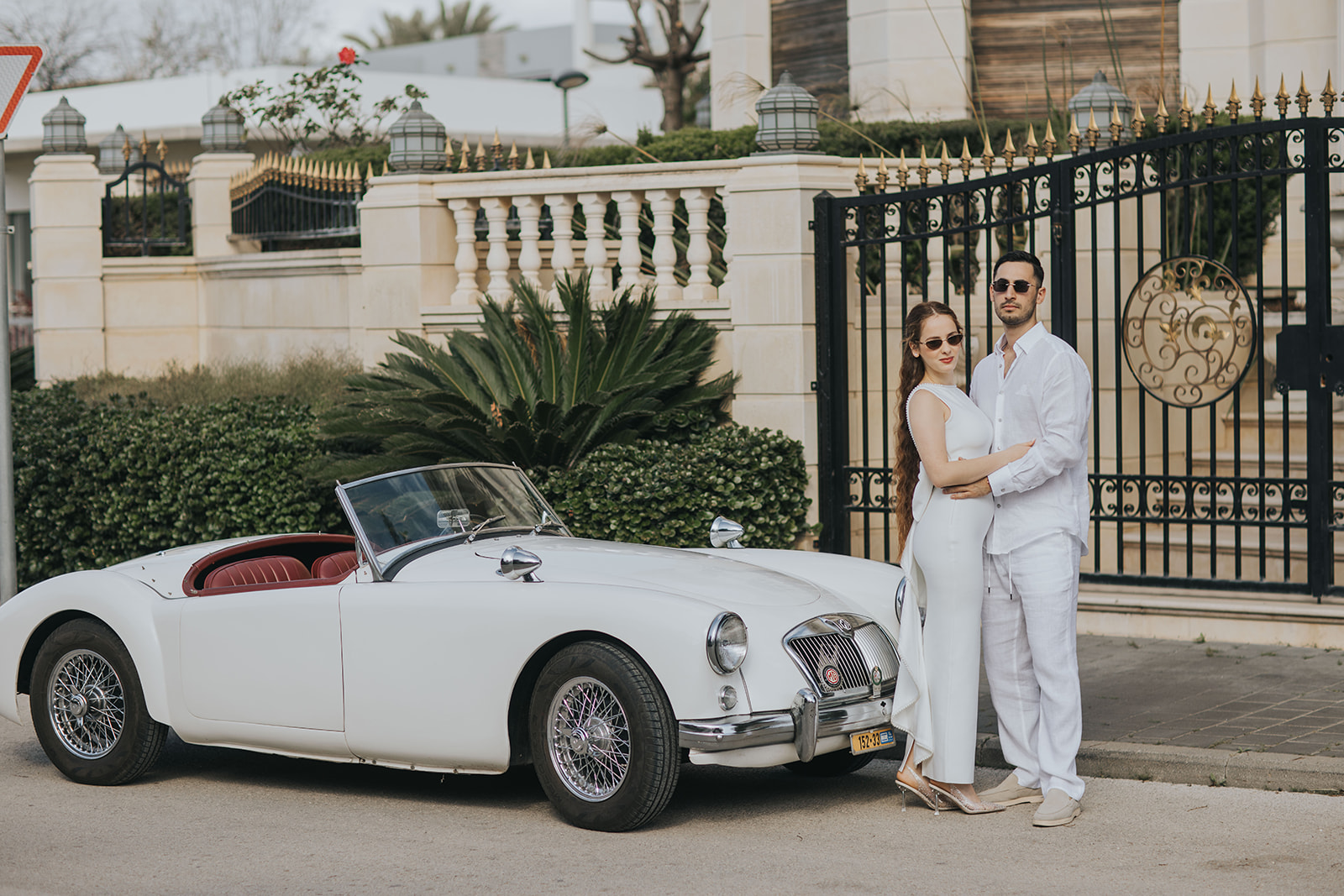 ה־MG A קבריולט משנת 1959 הוא אחד מרכבי הספורט הבריטיים האייקוניים של שנות ה־50, המשלב עיצוב אלגנטי עם חוויית נהיגה פתוחה ומהנה. הרכב מציג קווים זורמים, פרופורציות נמוכות ותחושת קלילות שמאפיינת את רוח התקופה. והאווירה הרומנטית שהוא משדר, הרכב מתאים במיוחד לצילומי חתן־כלה, הפקות אופנה ואירועים יוקרתיים – ומוסיף טאץ’ ייחודי, אלגנטי ובלתי נשכח לכל פריים.